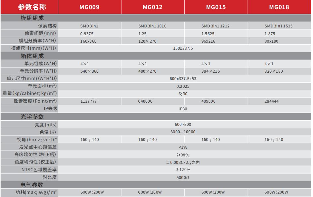 MG 系列定位于主流小间距产品, 600mm 宽度和 16 : 9 宽高比,具有全前维护的特性,降低了客户使用门槛。 MG 系列采用了极简设计理念,将333体育小间距产品的多年设计经验浓缩成 MG 的核心性能中,在保证高质量视频显示效果的同时,降低了客户总体拥有成本。外观经过精心设计,在优美的外形下包容了关键组件的同时,还添加了功能检测功能,同时保证系统的良好散热。 MG 可选电源备份,标配信号环路备份。