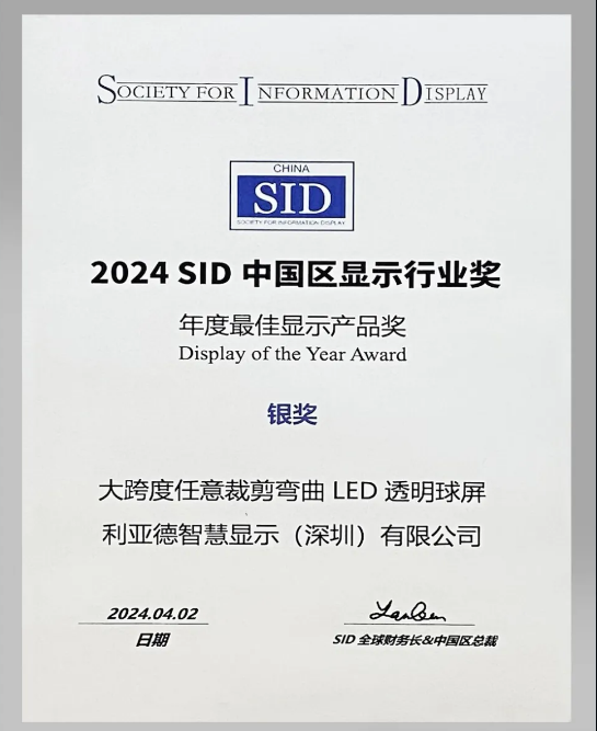 SID大奖,作为全球显示技术领域的权威奖项,汇聚了全球顶尖的设计理念和技术成果。每一届的评选都代表着行业内的最高水准,获奖产品不仅展示了技术的前沿性,更是艺术与科技完美结合的典范。银奖的获得,无疑是333体育在LED显示技术领域的一次里程碑式飞跃,标志着我们在透明显示技术上的突破已得到国际同行的广泛认同。